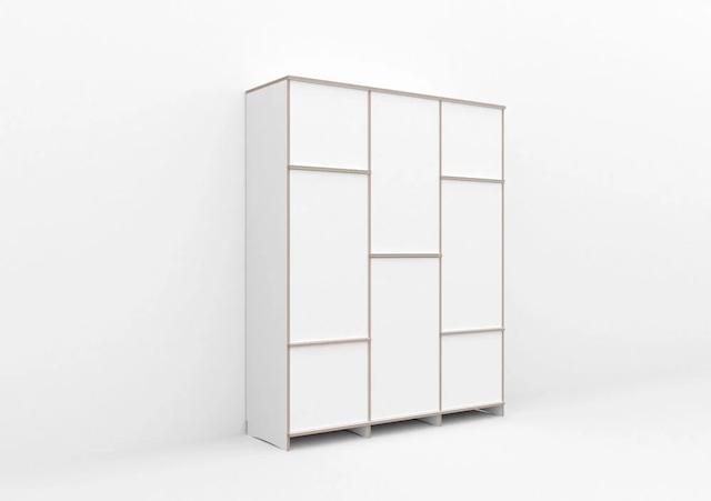 サイズ (幅x高さx奥行き) 284x240x60cm 板厚 18mm テトリスのように、どんな部屋でもリラックスできます。幅284cm、高さ240cm、奥行き60cm、11ドア(押し開き機能付き)、4つのクローレレールがあり、多くの衣類を収納可能です。白い前面のオークバーチ合板はとてもシックで部屋を明るくしてくれます。 3Dシュミレーターでカスタマイズする https://x.gd/hIipqy カスタマイズした図面をテツヤ・ジャパンに送る方法 https://www.birchplywood.jp/design/#flow_tt01 ガラのリビングルームキャビネットは、その雪のように白い見た目で印象的です。不規則に配置された開閉式の仕切りはリビングルームを緩めます。寸法(幅×高さ×幅)は120×200×30cmでカスタマイズ可能です。 ●イメージ写真、価格を基にサイズ調整し、ご検討ください。 ●板断面は無塗装にて出荷します。 ●天然素材の為、積層部分に抜けや色の違いなど多少の差があります。 ●こちらの商品は組み立て式です。大人2人以上で組み立ててください。 ●お届けには路線便ドライバー1名による軒先でのお渡しになります。 ●梱包材の処分はお客様にてお願いします。 ●転倒防止用品の取り付けをされる場合は、壁の材質などにより検討が必要です。 ※寸法や仕上げでの打合せが必用な商品です。 ※受注生産となりますのでキャンセル・変更・返品・交換をお受けしてません。