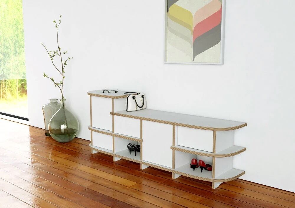 Rytmaのシューベンチは独特なデザインで注目を集め、ご自宅の見どころとなっています。家具は少なくとも8足の靴を置けるスペースがあり、ティップオンドアのおかげで整頓感が保たれています。コンフィギュレーターでは、シューベンチを玄関エリアにぴったり収まるように調整できます。ここでは寸法や素材だけでなく、形状もお好みに変えられます。ぜひ試して、あなただけのユニークな作品をデザインしてみてください!
