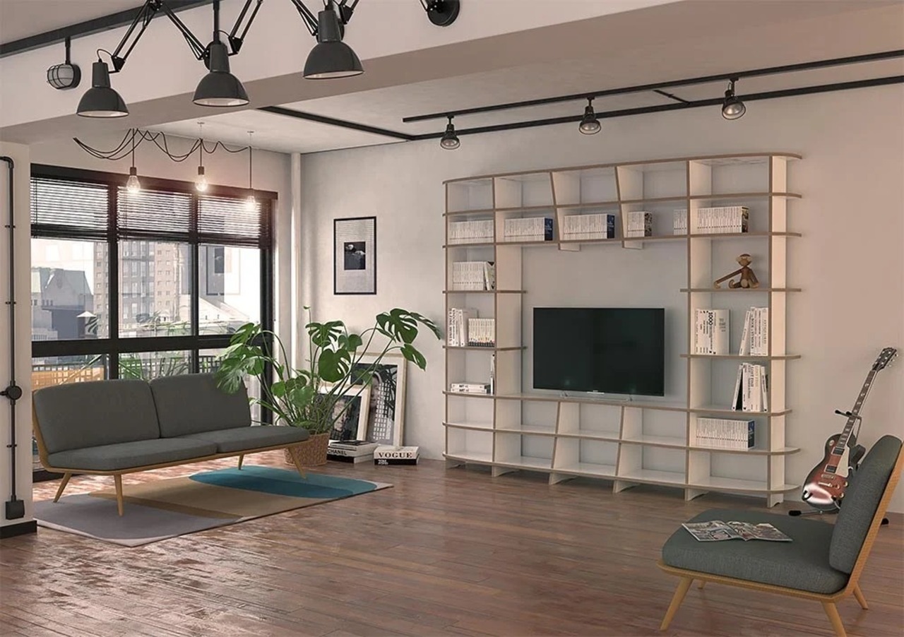 ガラのリビングルームキャビネットは、その雪のように白い見た目で印象的です。不規則に配置された開閉式の仕切りはリビングルームを緩めます。寸法(幅×高さ×幅)は120×200×30cmでカスタマイズ可能です。