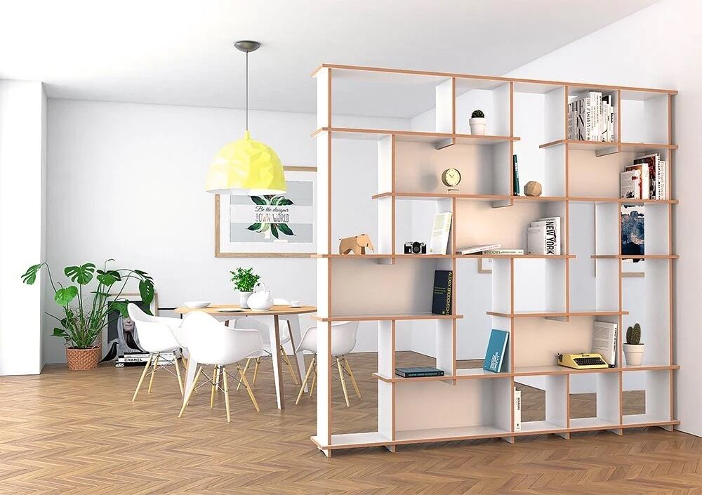 ガラのリビングルームキャビネットは、その雪のように白い見た目で印象的です。不規則に配置された開閉式の仕切りはリビングルームを緩めます。寸法(幅×高さ×幅)は120×200×30cmでカスタマイズ可能です。