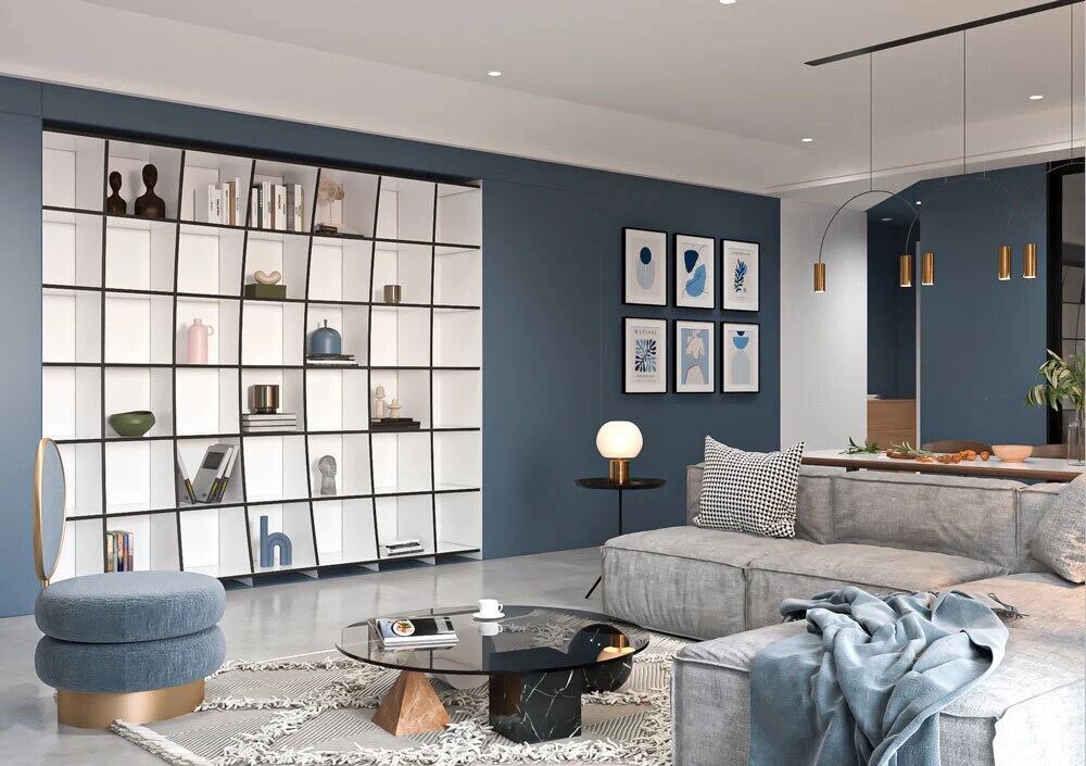 ガラのリビングルームキャビネットは、その雪のように白い見た目で印象的です。不規則に配置された開閉式の仕切りはリビングルームを緩めます。寸法(幅×高さ×幅)は120×200×30cmでカスタマイズ可能です。