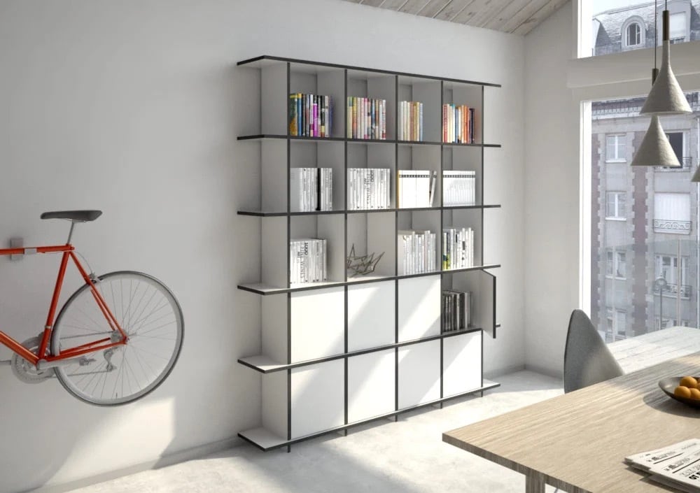 本は棚の上で完璧に発揮され、ファイルフォルダーやその他の重要な書類は書斎にきちんと収納できます。棚の下部には8つのドアがあり、外から見えないはずの物を収納できるスペースを提供しています。